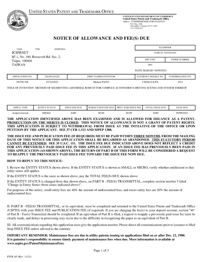 恭賀山東聚祥榮獲美國(guó)專利授權(quán)<一種面向復(fù)雜自動(dòng)駕駛場(chǎng)景的異常魯棒分割方法與系統(tǒng)>